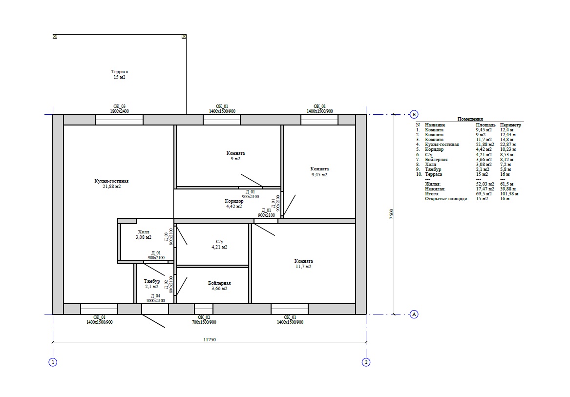 Проект 70 кв.м, Красноярский край, ДНТ Теремок